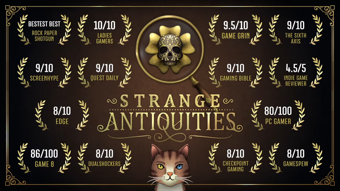 Strange Antiquities launched on the 17th of September on PC (Steam, Epic Games Store) and Nintendo Switch. Since then, it has received amazing reviews, with an 82 Metacritic Score and a 90% OpenCritic score.